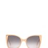 These sunglassess are crafted in an elegant black with sparkling details, these slightly rounded geometric-shaped sunglasses feature a modern and feminine design. The gradient lenses add a touch of softness, while the temples showcase a gold metal detail with the Maison’s name