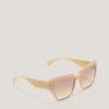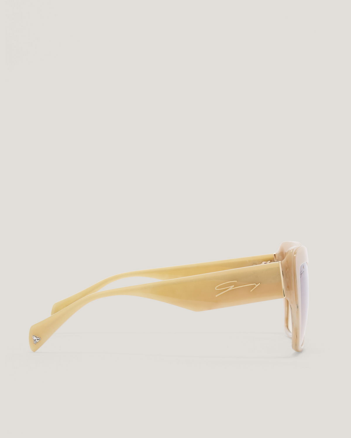 With a captivating beige frame, these sunglasses embody a minimalist and chic aesthetic. The square shape and brown gradient lenses make them perfect for a modern and versatile look. The Genny logo on the temples adds an iconic touch, creating an accessory that seamlessly combines elegance and functionality.