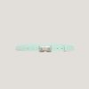 Slim belt, featuring a silver wave-shaped buckle. A modern and minimalist accessory, ideal for enhancing any outfit with understated elegance.