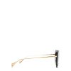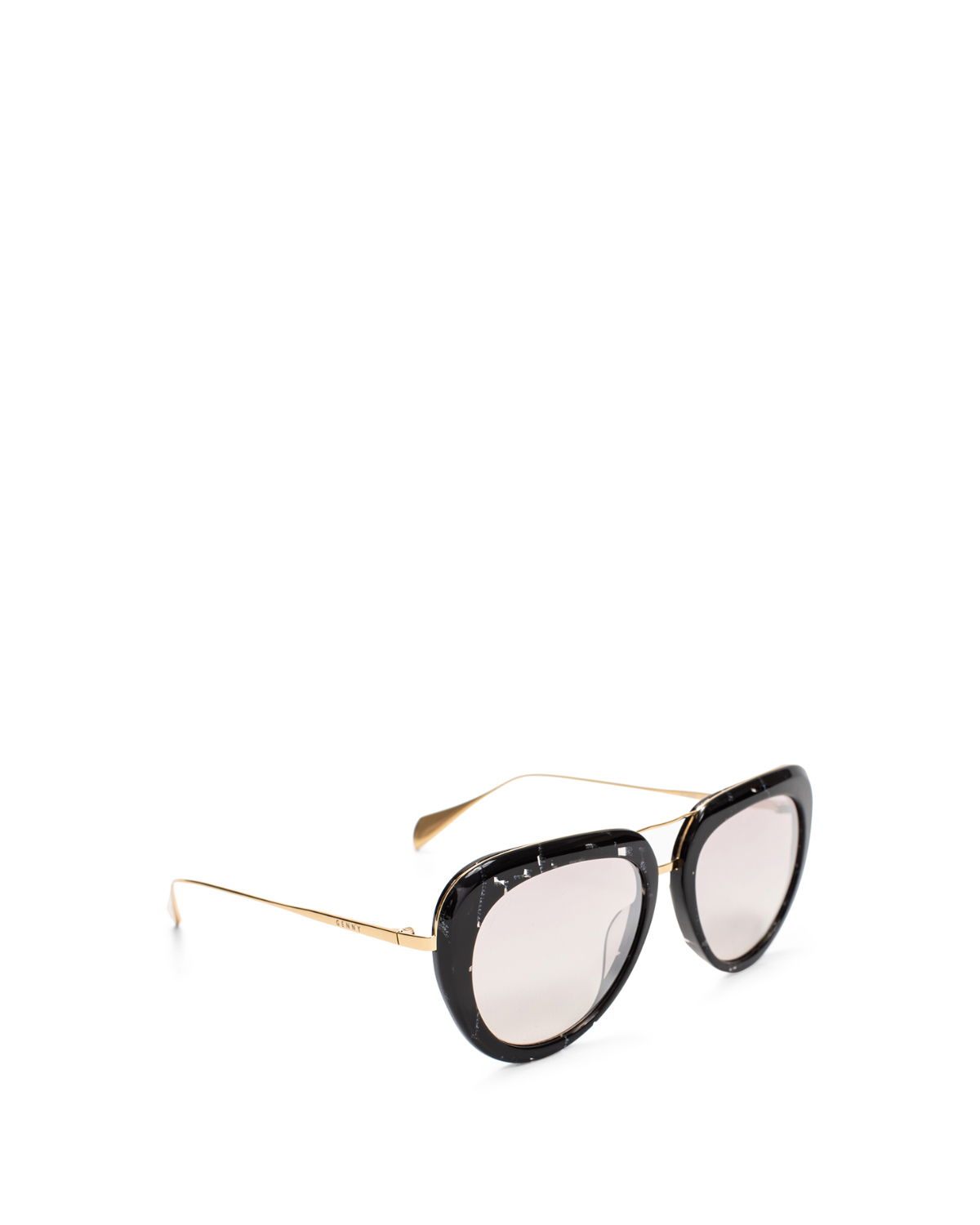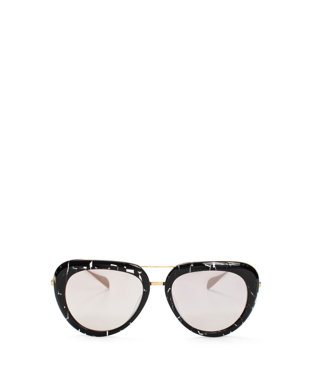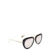 The black aviator sunglasses are embelished around the lenses with a golden ring and crystals on the bridge. They are charactterised by gradient purple lenses.
