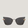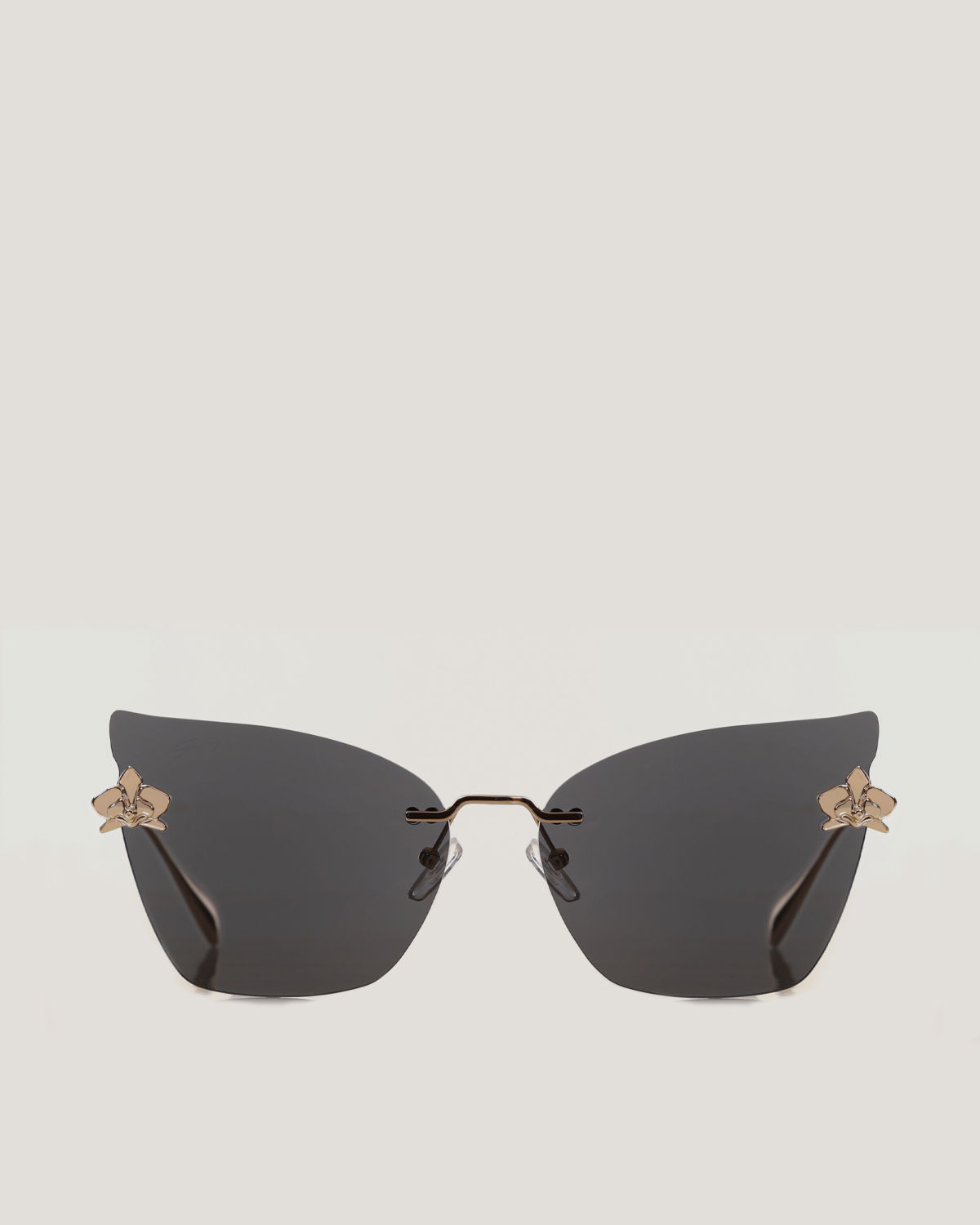 Genny sunglasses with a minimalist rose-gold metal frame and gradient lenses, ideal for a sophisticated and feminine look. The cat-eye design enhances elegance, while the iconic three-dimensional orchid symbol on the lenses adds a distinctive and glamorous touch. Perfect for elevating refined and luxurious outfits.