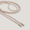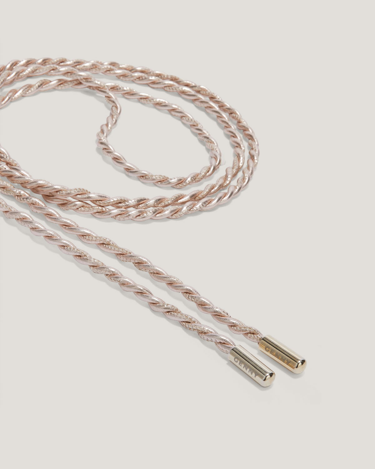 The laminated leather rope-effect belt adds a touch of elegance and originality to every outfit. Crafted with meticulous attention to detail, the belt features an intricate silver rope pattern that captures the eye with its metallic splendor. Its versatility makes it perfect for completing a casual chic look or adding a touch of class to a more formal dress. Whether you’re looking to define the waist of a dress or add a touch of glamour to a pair of jeans, this belt is the perfect accessory to express your individuality with style.