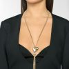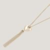 A sensuous long necklace featuring a polished gold-tone heart pendant, adorned with radiant details and a tassel made of fine chain strands. Its elongated silhouette and luminous finish make it the perfect accessory to elevate eveningwear or refined, modern ensembles.