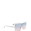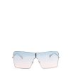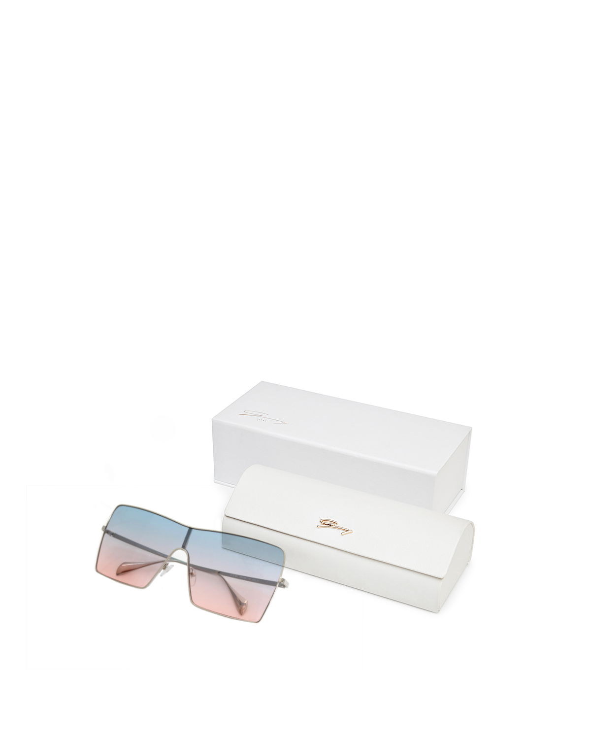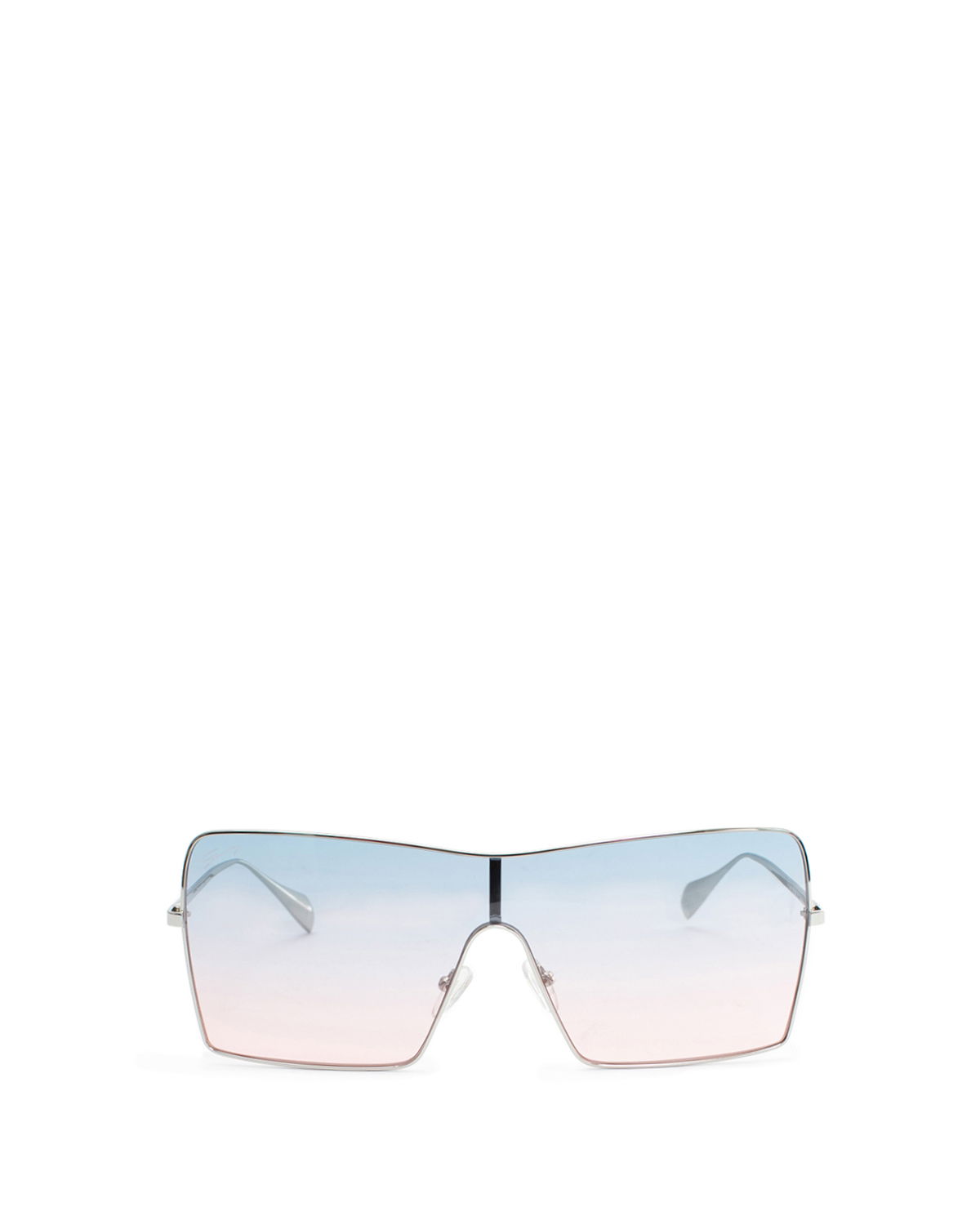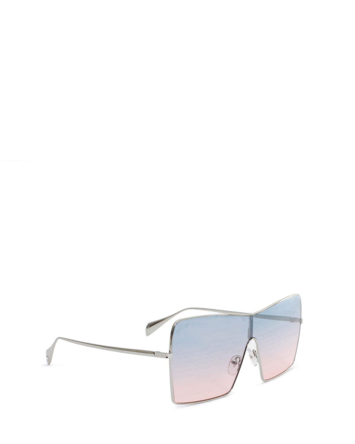 Let these metal square sunglasses from Genny allow you to stand out from the crowd with its angular geometric shield for that futuristic vibe. The temples features extra coverage and are complimented with large smoke gradient lens, making it perfect for those who desire both functionality and style with its 100% UV protection. Make this pair a statement piece for your day out in the sun.