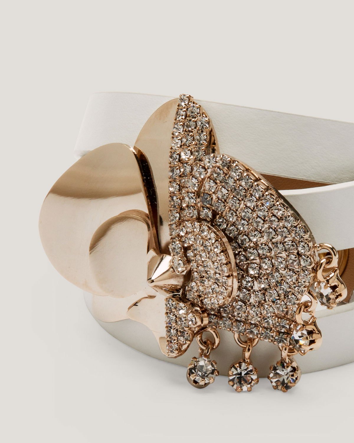 The Elegant bracelet with crisscross leather strap and hollow-full moonlight orchid effect is an extraordinary creation in the world of luxury accessories. Its design features an orchid with a hollow and full effect, almost resembling a lunar flower. The gracefully intertwined leather strap completes the piece. This bracelet embodies timeless elegance and ethereal beauty.