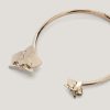 This elegant necklace is adorned with delicate orchids at both ends, crafted in polished metal that beautifully reflects the light. The minimalist design adds a touch of sophistication to any look, while the subtle floral detail brings a unique and feminine touch. The open-ended structure makes it easy to wear and style, perfect for both day and evening looks. A statement piece for those who love refined elegance with a modern twist.