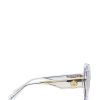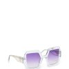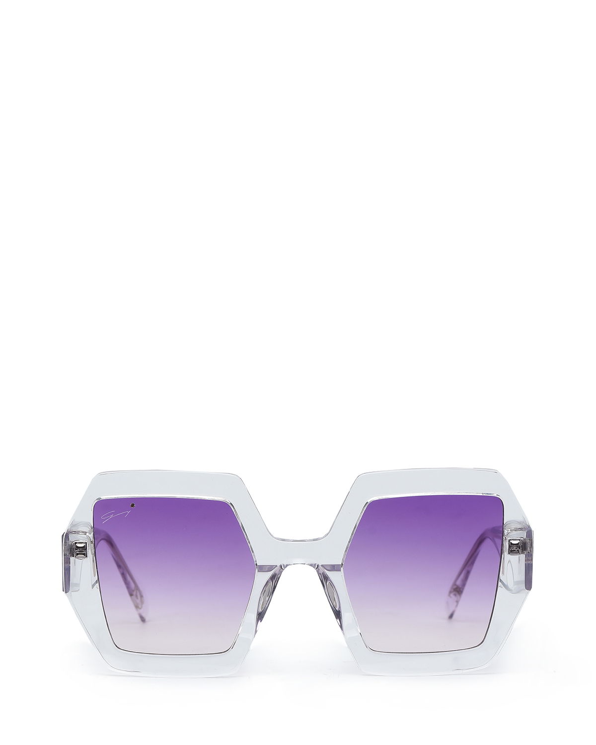 With their feminine and easy-to-wear style, the square sunglasses are great to pair with any look. The temples start with Genny orchid symbol that gives this piece an iconic twist. Moreover, the temples are surrounded by an elegant golden profile. The lenses gradually change colour from blue to white. Golden Genny logo completes the temple tips.