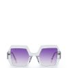 With their feminine and easy-to-wear style, the square sunglasses are great to pair with any look. The temples start with Genny orchid symbol that gives this piece an iconic twist. Moreover, the temples are surrounded by an elegant golden profile. The lenses gradually change colour from blue to white. Golden Genny logo completes the temple tips.