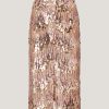 This pencil skirt is embellished with iridescent geometric sequin embroidery that creates a refined play of light. The knee-length cut and body-hugging fit enhance the silhouette, while the slit adds a sensual, dynamic touch.