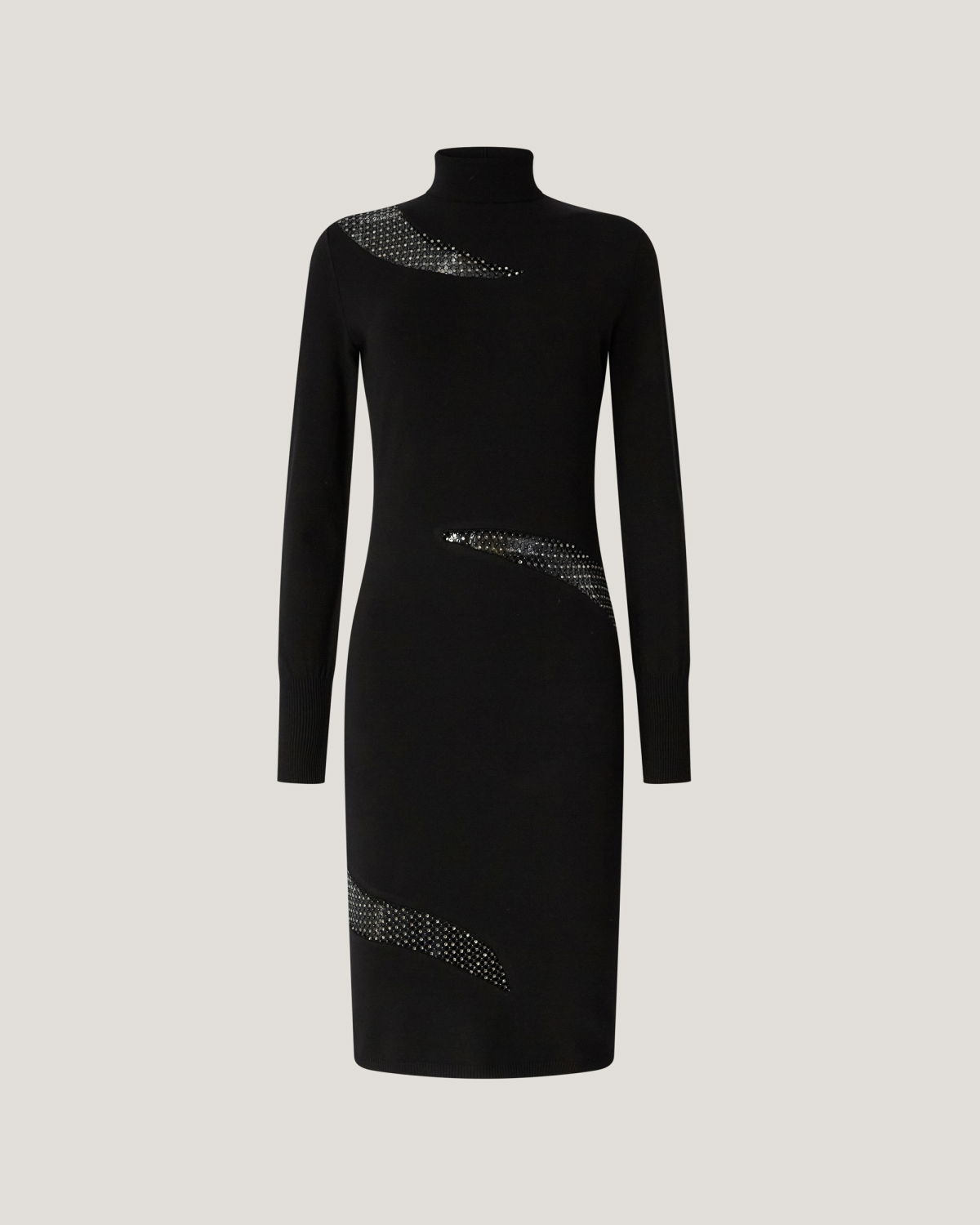 GENNY Women’s Ready-to-wear Turtleneck Dress With Pearl Rhinestone Inserts