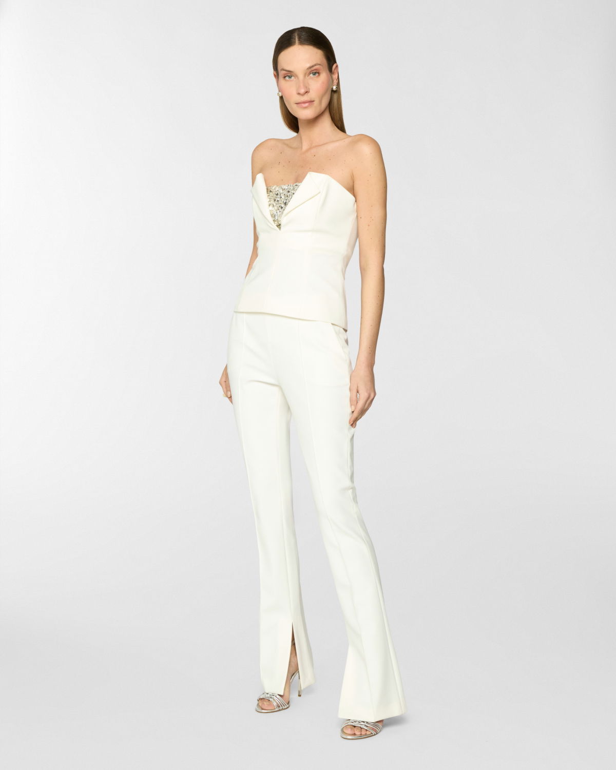 Essential lines and impeccable tailoring define these cigarette pants, designed to enhance the figure with graceful precision. The inner ankle slit adds a touch of refined detail.