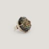 Gold-tone brass ring with a dark crystal and an orchid shaped, a piece of jewelry that embodies the perfect blend of elegance and modernity. This ring features a large faceted crystal encased in a delicate floral-shaped metal structure, capturing light and adding a touch of refinement to any look. The adjustable band ensures a comfortable fit, perfectly adapting to any hand. Ideal for adding a subtle touch of luxury, it is the perfect accessory for both day and evening outfits.