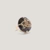 Gold-tone brass ring with a dark crystal and an orchid shaped, a piece of jewelry that embodies the perfect blend of elegance and modernity. This ring features a large faceted crystal encased in a delicate floral-shaped metal structure, capturing light and adding a touch of refinement to any look. The adjustable band ensures a comfortable fit, perfectly adapting to any hand. Ideal for adding a subtle touch of luxury, it is the perfect accessory for both day and evening outfits.