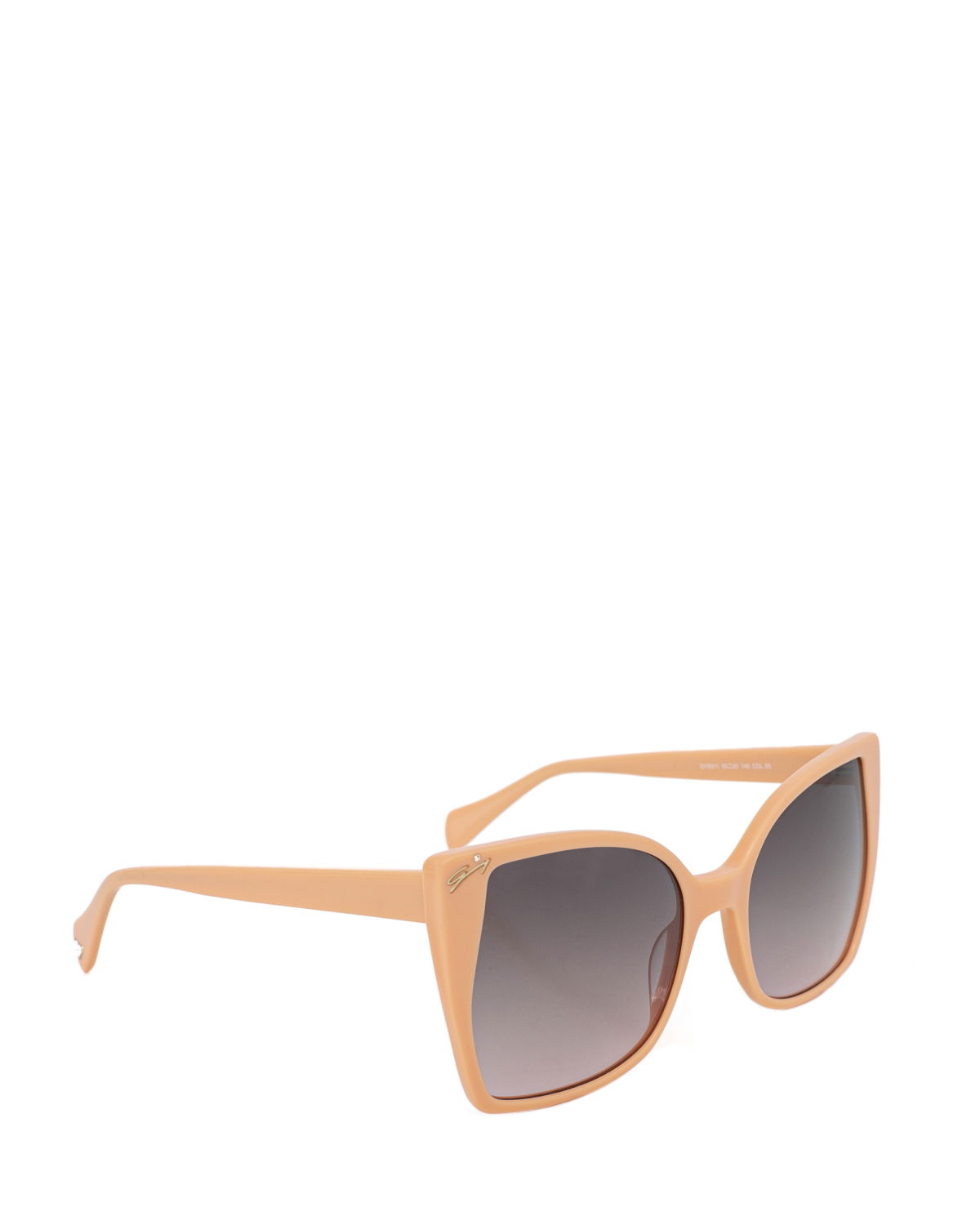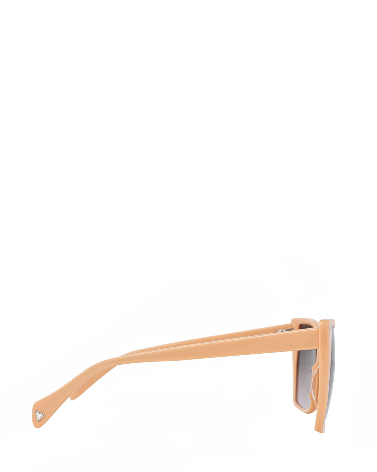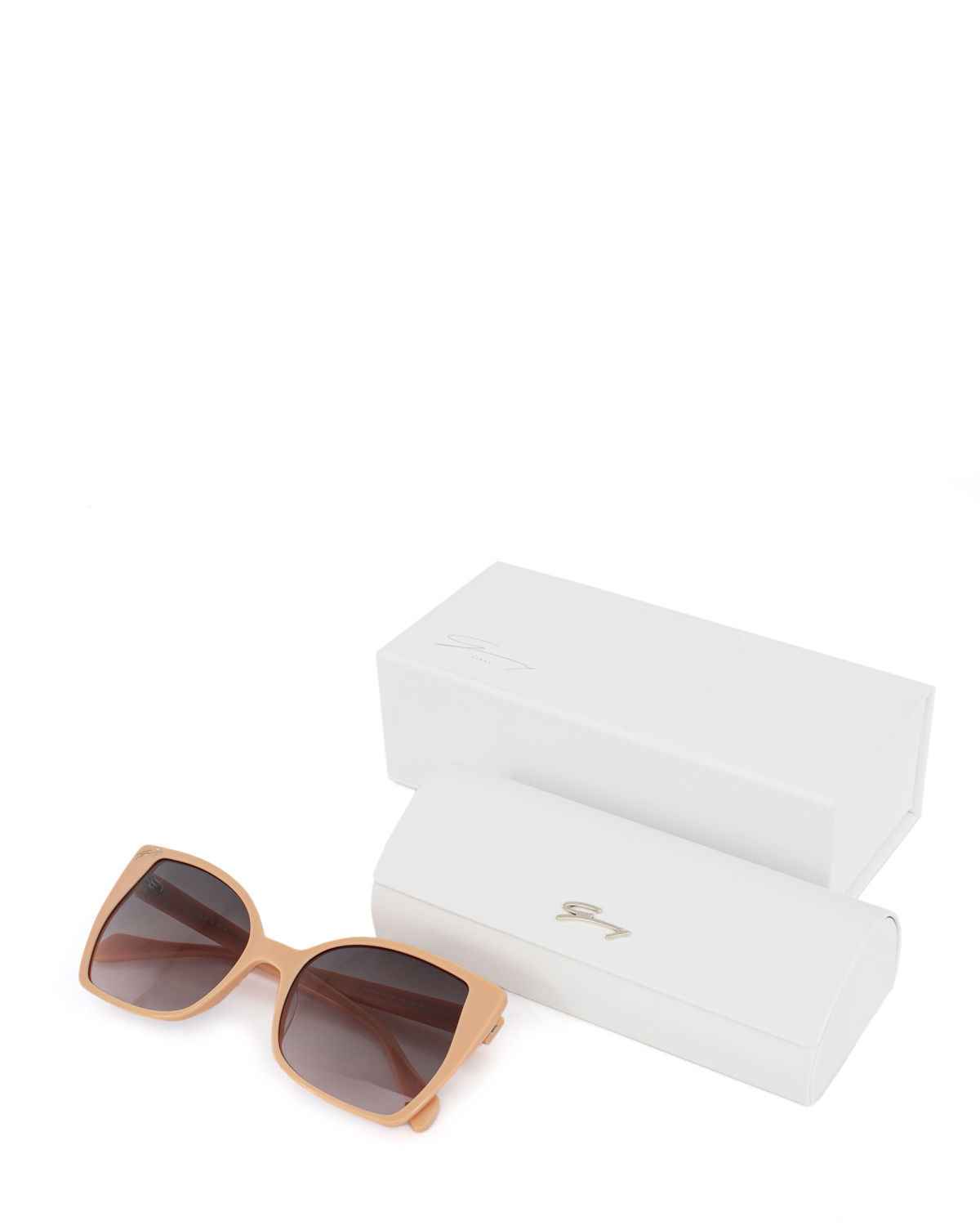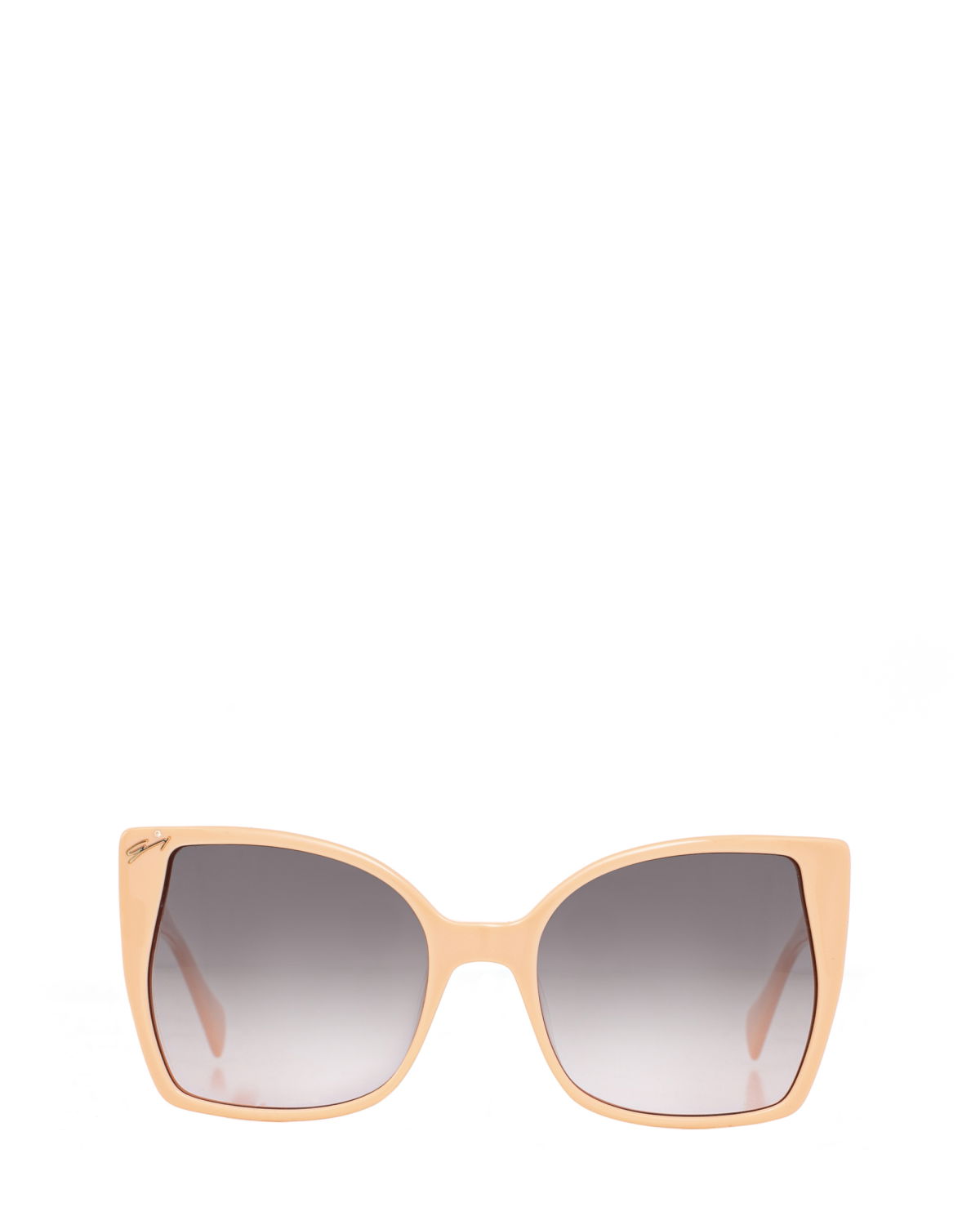 The square shape sunglasses are crafted from glossy pink acetate with smoky gradient lenses and detailed with the Genny logo.
