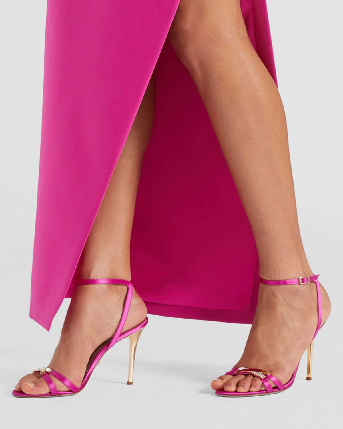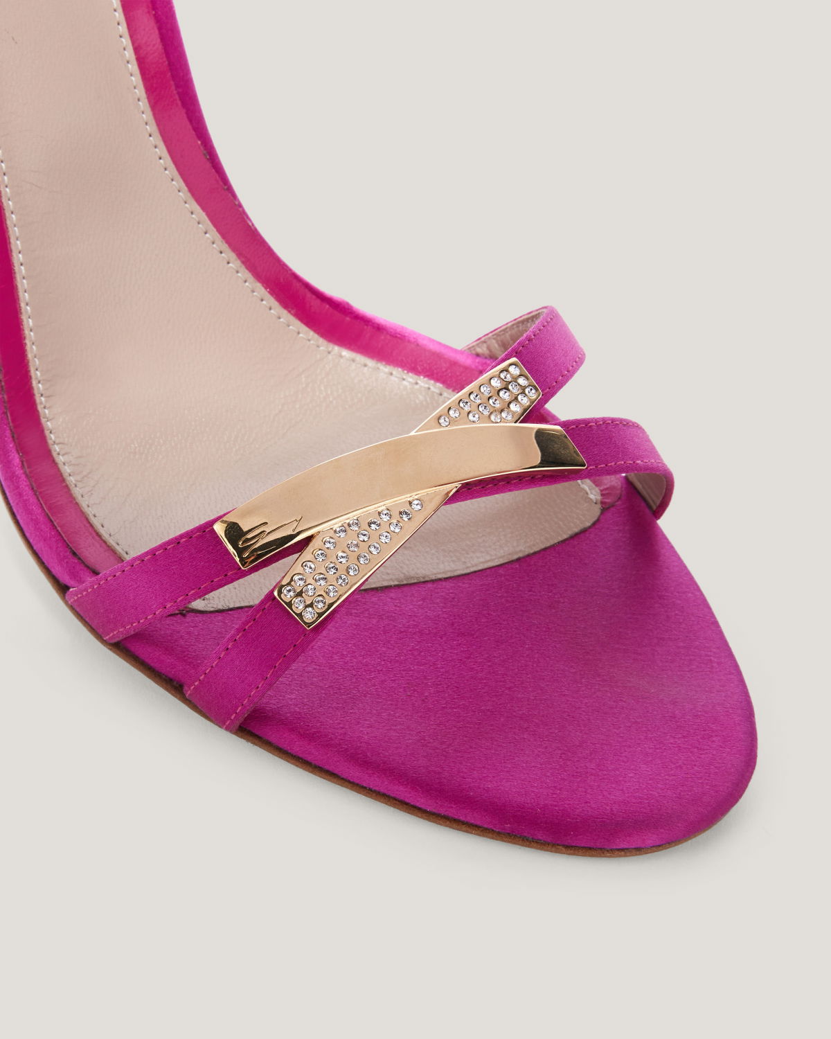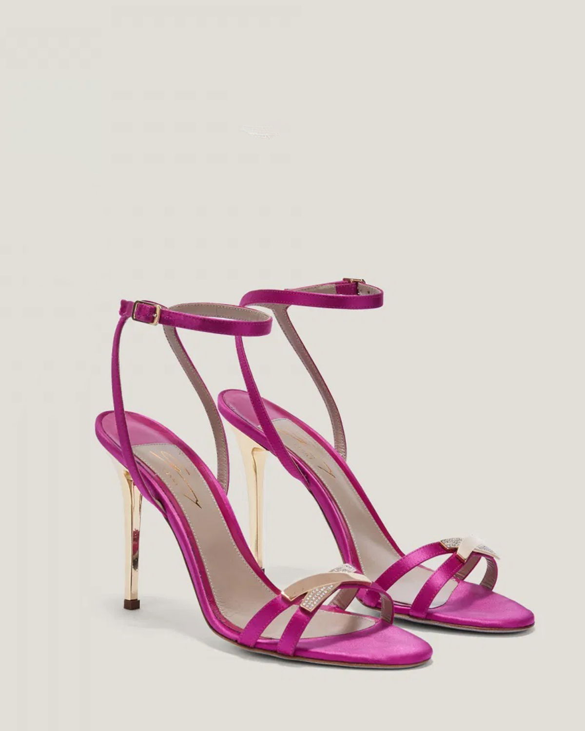 The sandals with X jewel insert transform each step into an experience of elegance and beauty. They are perfect to wear with collection dresses. Add a touch of magic to your wardrobe.