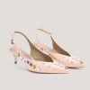 These elegant slingback pumps by Genny, crafted in leather, feature a pointed toe and are embellished with sparkling multicolor crystals. The thin strap with adjustable buckle ensures a secure fit, while the mid heel offers both comfort and style. Perfect for formal occasions or to add a sophisticated touch to casual looks.