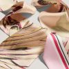 Elegant scarf crafted from pure silk, featuring a Jungle Flower print with natural and floral motifs. The soft and fluid texture of the fabric provides a delicate drape, perfect for enhancing any outfit with a touch of femininity and elegance. The tapered ends give it a modern and versatile look, ideal for wearing around the neck or tied to a bag for a chic and sophisticated detail.