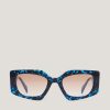 These square sunglasses, made with a black and blue tortoiseshell frame and golden metal details featuring an orchid, a symbol of the Maison. They boast a modern design with elegant lines. The gradient lenses add a touch of originality.